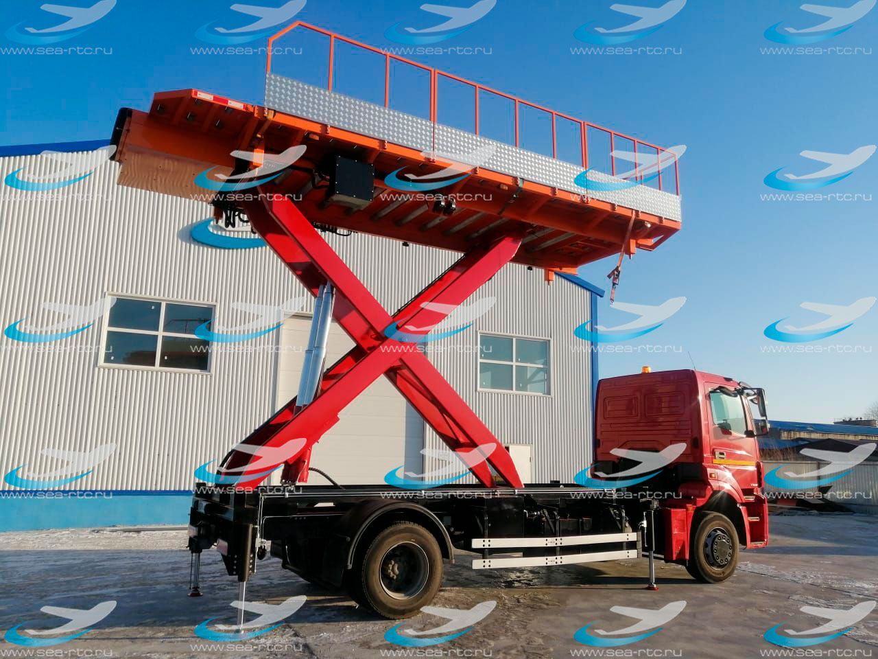 - Конструкция автомобиля представляет собой смонтированные на шасси КАМАЗ 5325, элементы: Подрамник с силовыми балками для аутригеров, Подъемный механизм ножничного типа, Платформа с приводными роликами и функцией поперечного и продольного перемещения относительно транспортного положения, а так же возможность поворота на ±3°;