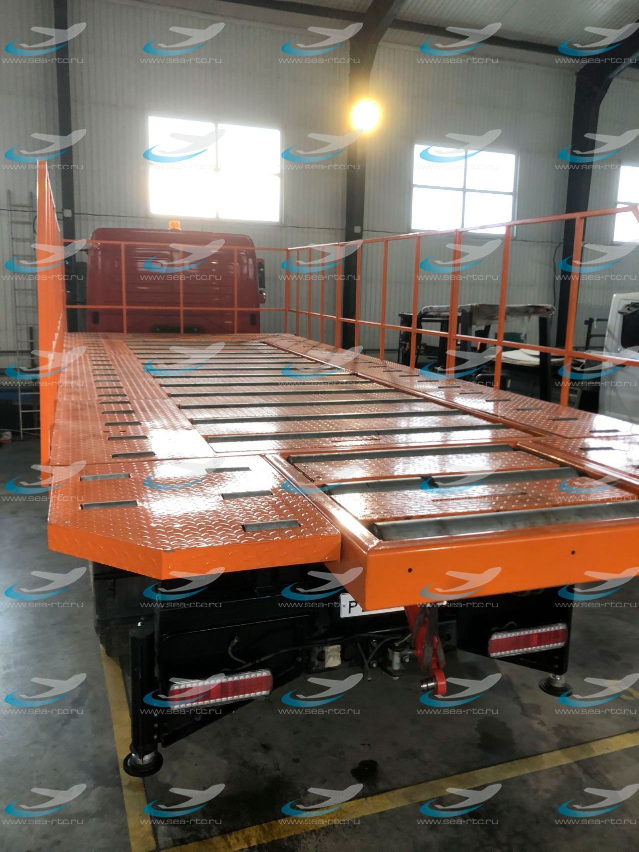 - Две откидные площадки с не приводными роликами в заднем конце платформы.