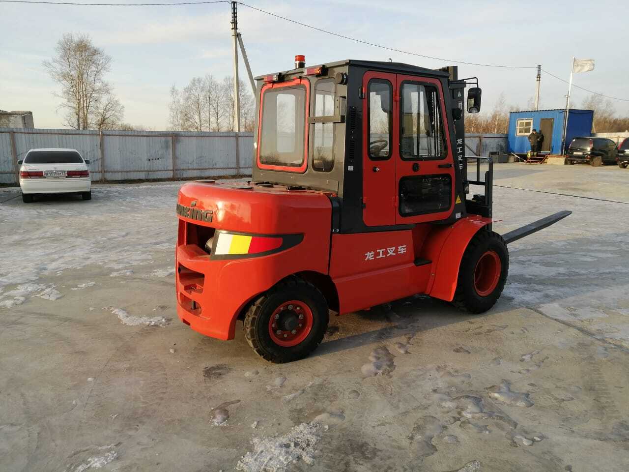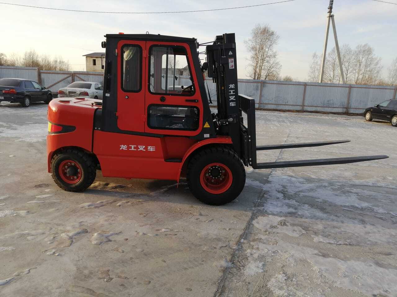 Вилочный автопогрузчик дополнительно оборудован закрытой отапливаемой кабиной, удлиненными вилами (2 метра), системой смещения каретки вил, предпусковым подогревателем охлаждающей жидкости двигателя.
