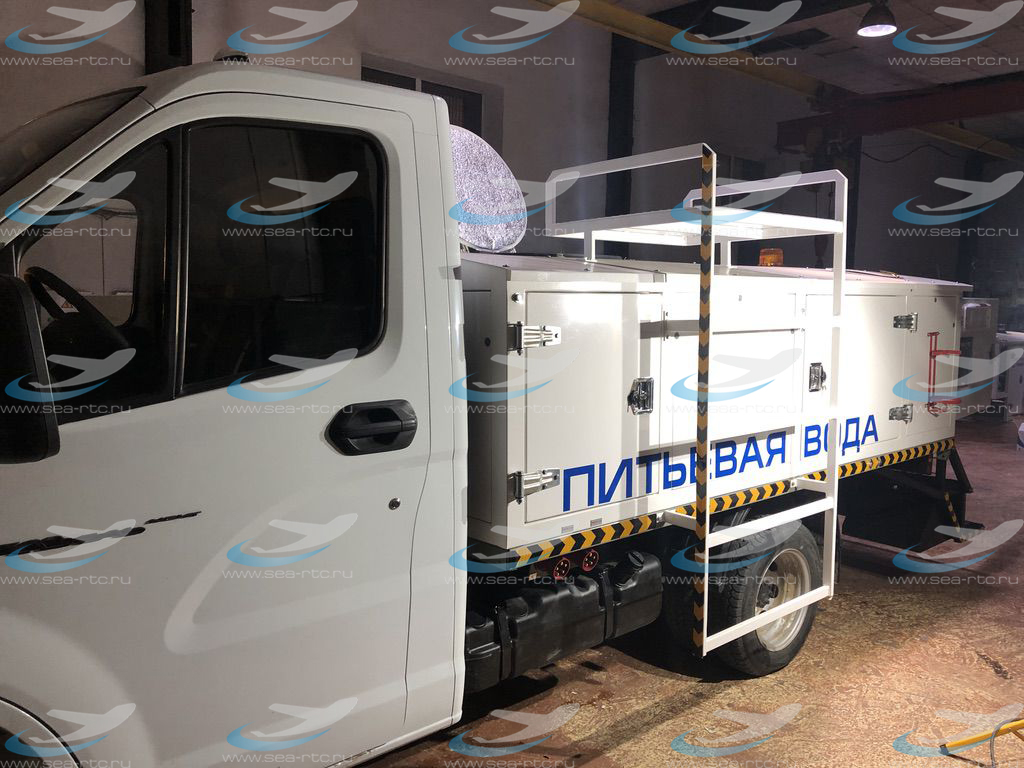 Спецмашина оборудована баком для воды, изготовленным из нержавеющей стали, объемом 800 литров. Бак и оборудование установлены в специальном утепленном кузове, оснащенном воздушными отопителями, работающими как автономно, так и от внешнего источника (на стоянке). Также бак оборудован тэнами для подогрева воды в баке, а для обслуживания бака предусмотрен люк диаметром 600мм.