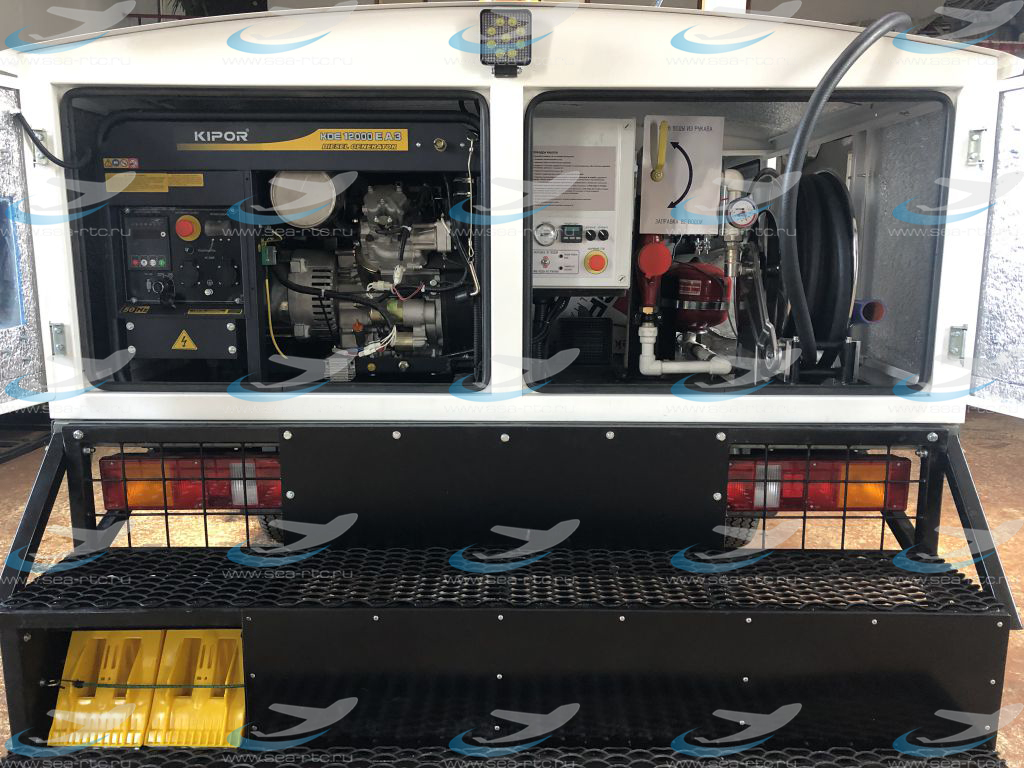 Спецмашина изготовлена в автономном варианте (с дизельным генератором), для стабильной работы насоса и обогревателей, не зависящего от коробки отбора мощности шасси.