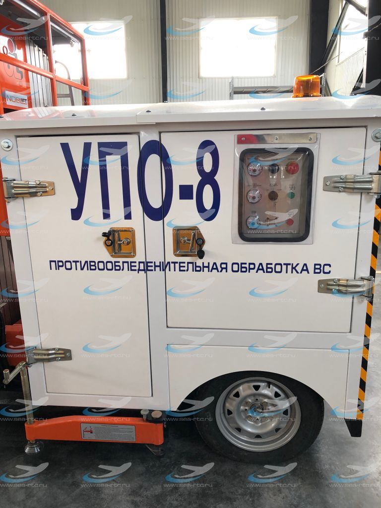 Установка противобледенительной обработки ВС УПО-8 смонтирована на прицепной двухосной тележке. На тележке установлен подъемник с ограждением для двух операторов с высотой подъема 8 метров и высотой обслуживания 9,5 метров. Для подъема на площадку обслуживания предусмотрена лестница. Подъемник оборудован выдвижными аутригерами устойчивости.