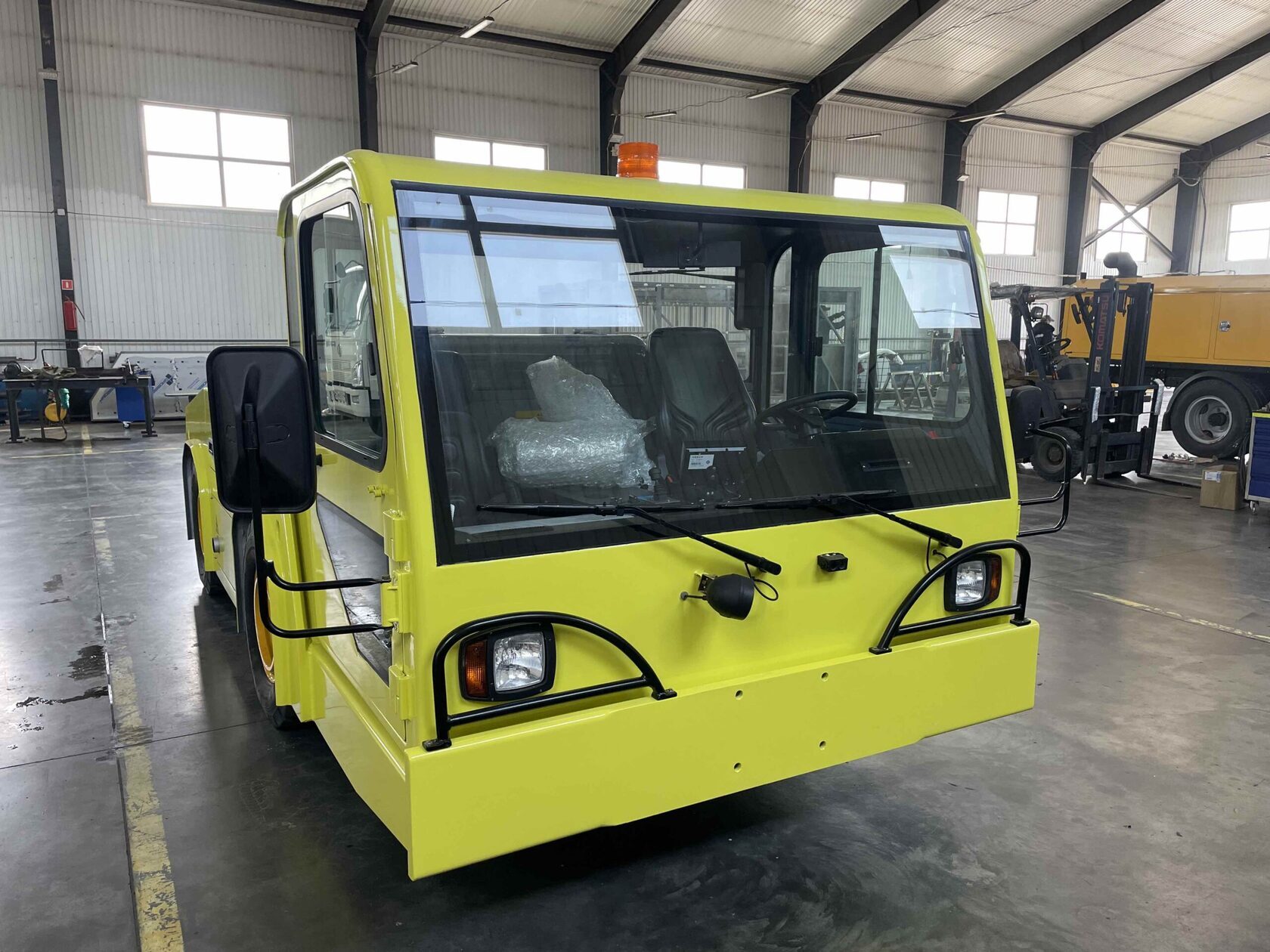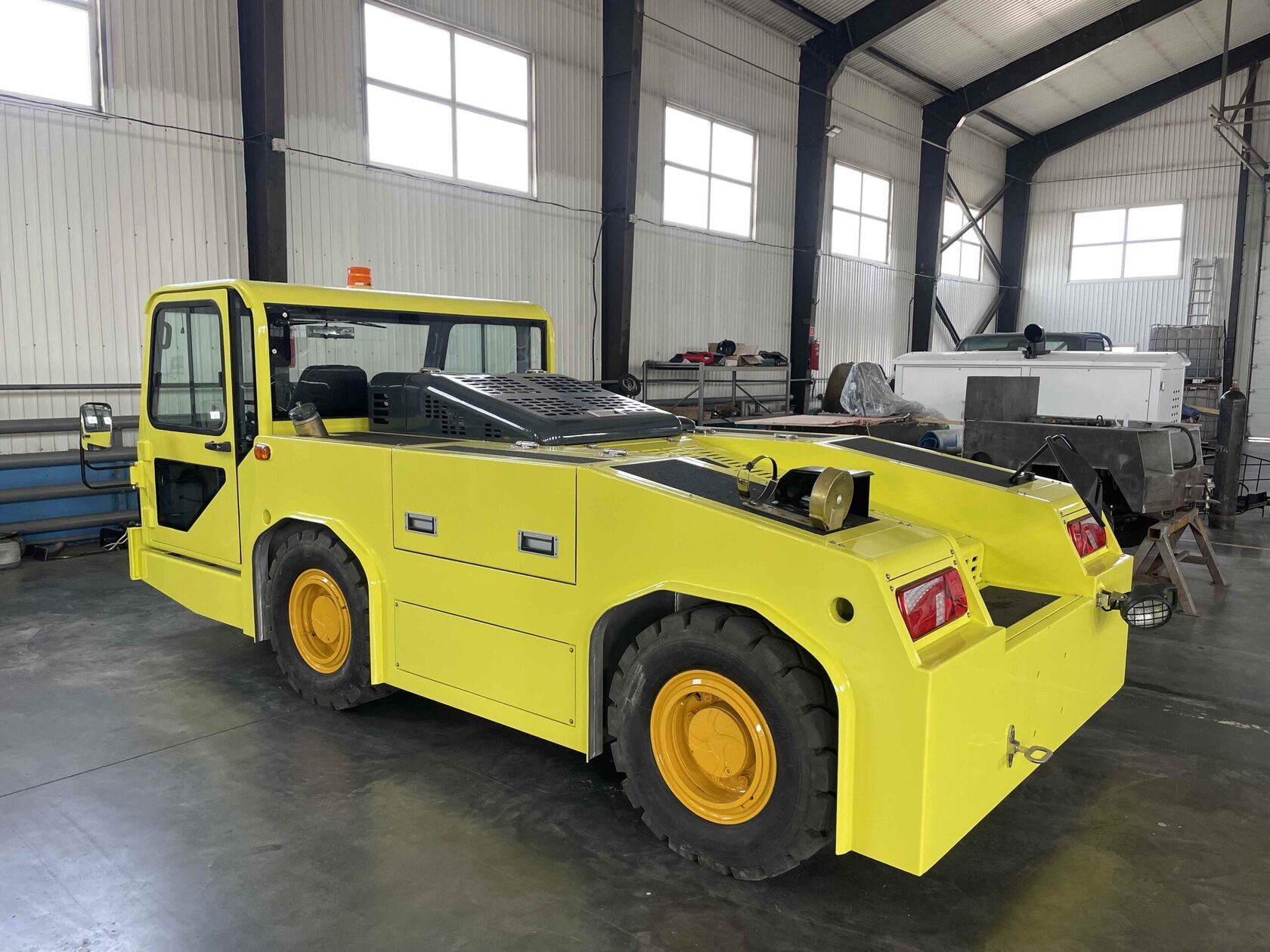 Для выполнения всех технических требований заказчика ООО «РТЦ» в заводских условиях осуществило перекраску тягача, оборудовало тягач всеми необходимыми для нормальной эксплуатации обогревами (лобовым стеклом с подогревом, автономными отопителями охлаждающей жидкости и салона, обогревом и зарядкой аккумуляторов и обогревом гидравлической жидкости). Помимо стандартных требований, специалистам ООО «РТЦ» необходимо было сконструировать и изготовить сцепное устройство с демпфером (амортизацией), для исключения жесткого сталкивания при буксировке ВС. С поставленными задачами РТЦ полностью справились, а клиент получил желаемый продукт.
